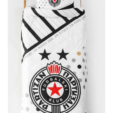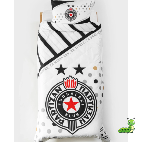 Na jastučnici i jorganskoj navlaci nalazi se autentični grb FK Partizan i natpis: