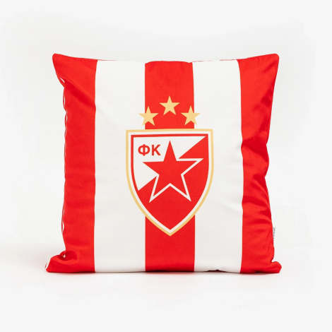 Jastučić Crvena Zvezda 45x45 – klasične crveno-bele pruge, mekan pliš i periva navlaka. Savršen poklon za svakog Zvezdaša!
