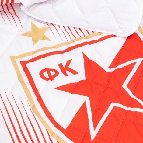 Prekrivač Crvena zvezda 140x200 – lice 100% pamuk, naličje pamuk/poliester. Crveno-bele pruge i veliki grb za prave navijače.