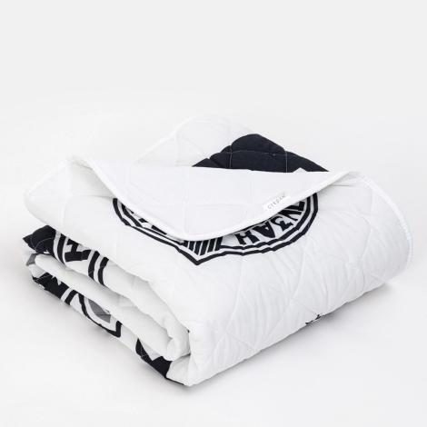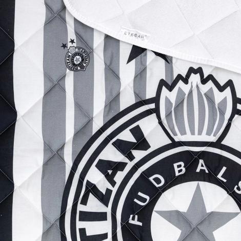 Prekrivač Partizan 140x200 – lice 100% pamuk, naličje pamuk/poliester. Moderni crno-beli dezen sa grbom za sve verne navijače.