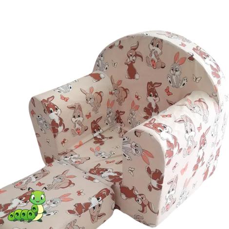 💗 Foteljica na razvlačenje – roze zeke – mekana, udobna i preslatka foteljica sa motivom zeke! Idealna za sedenje, igru ili dremku u omiljenom kutku deteta, sa nežnim, toplim dizajnom koji ulepšava dečiju sobu. 🐇✨