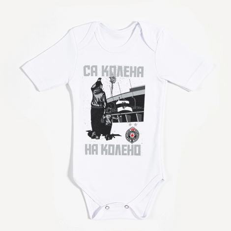 Bodi kratkih rukava „Sa kolena na koleno“ sa grbom FK Partizan savršen je izbor za najmlađe navijače. Izrađen od 100% pamuka, ovaj bodi pruža maksimalnu udobnost i nežnost za osetljivu dečiju kožu.