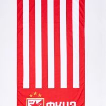 Na peškiru dominira natpis „Црвена звезда“ ispisan ćirilicom, uz precizno ucrtane koordinate stadiona „Rajko Mitić“ – mesta gde se sreću istorija i strast.