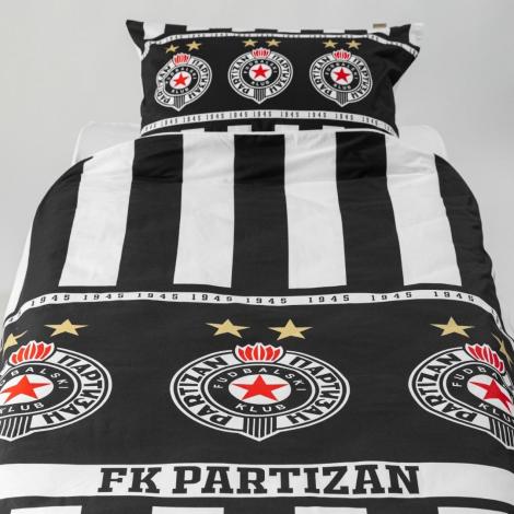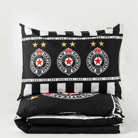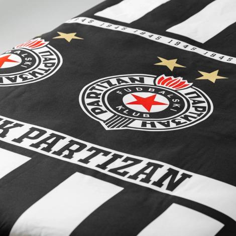 Na posteljini se nalaze tri grba FK Partizan, simboli snage, lojalnosti i uspeha, kao i godina osnivanja kluba – 1945, što ovaj set čini pravim navijačkim suvenirom.